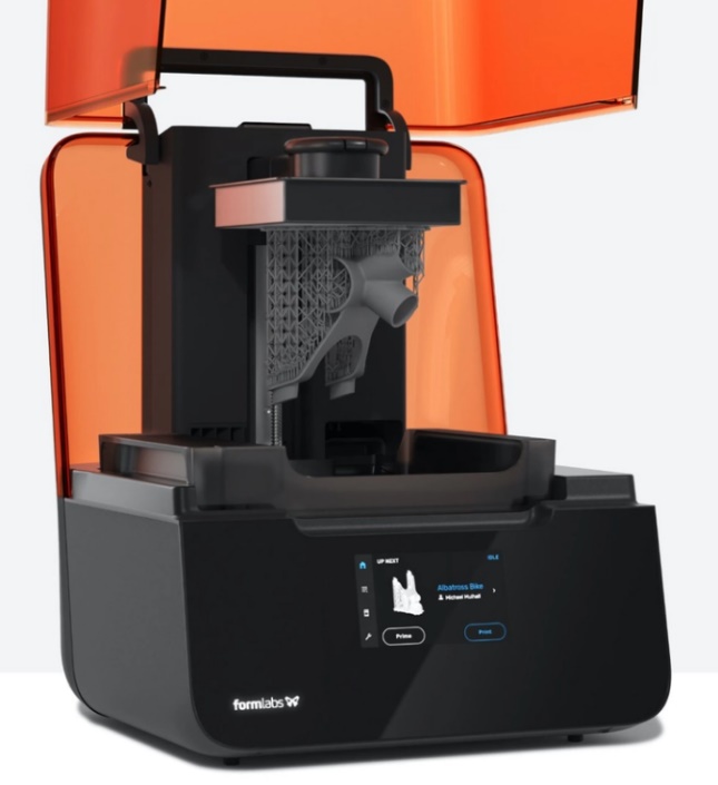 Our SLA 3D printer, the Formlabs Form 3+, is a versatile tool for high-precision fabrication and prototyping. Based on stereolithography (SLA) technology, it uses a laser to polymerize liquid resin layer by layer, producing parts with fine details, smooth surfaces, and excellent dimensional accuracy.
